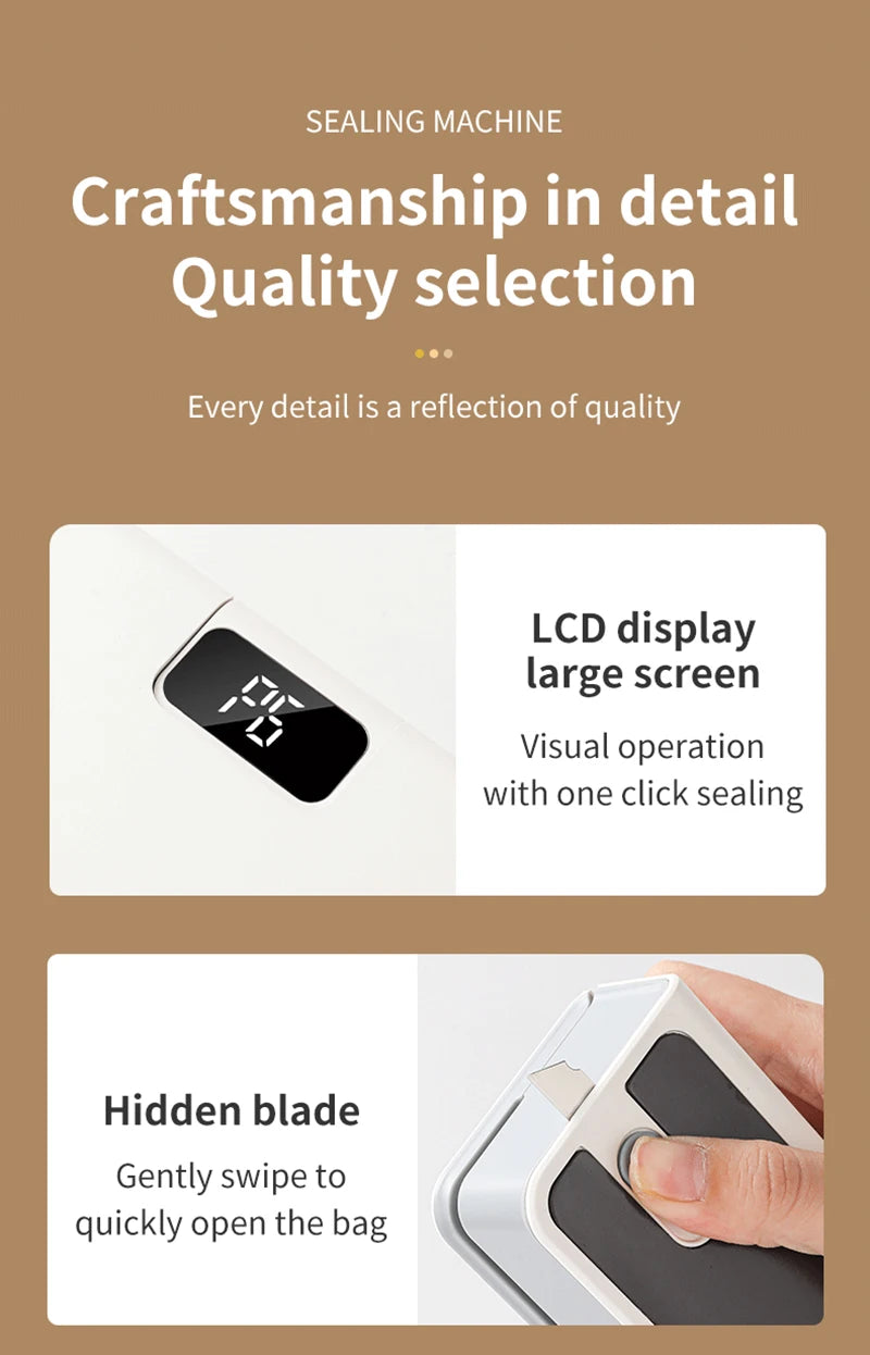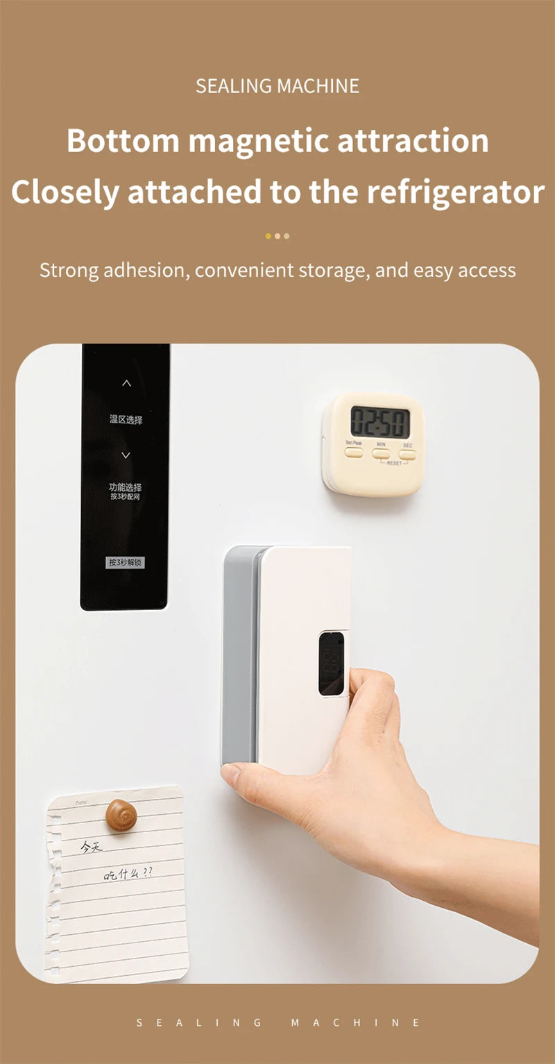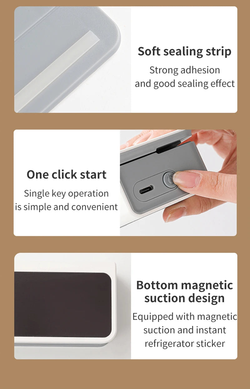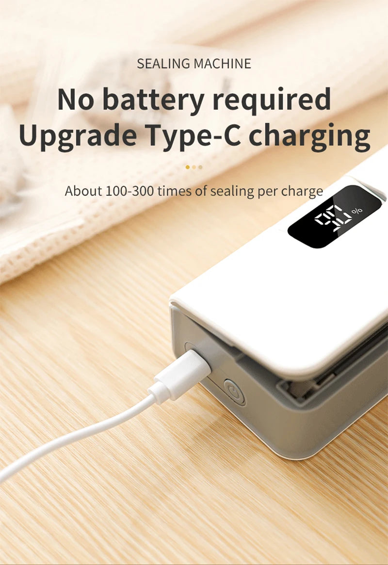 Eco-Friendly & Rechargeable: Forget about constantly replacing batteries. This sealer is powered by a high-efficiency internal battery, easily rechargeable via USB for long-term use.